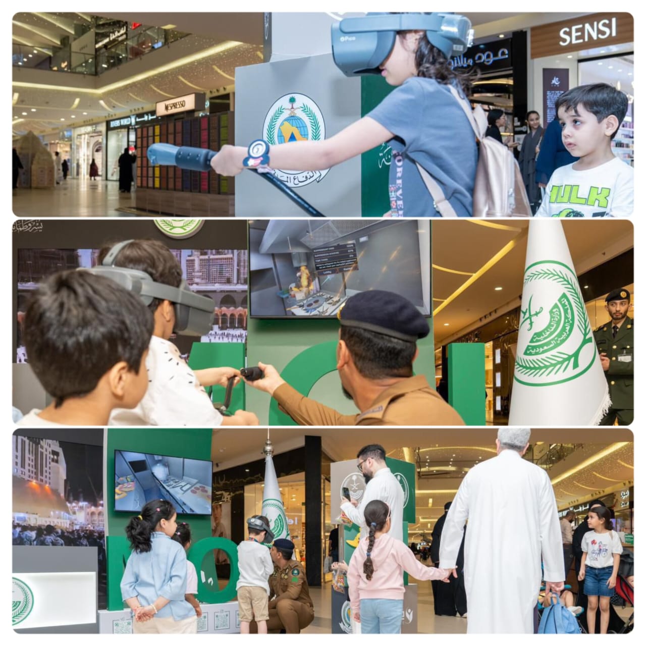 واستعرض الدفاع المدني للزوار، المهام والخدمات التي يقدمها لضيوف الرحمن، وتعزيز السلامة الوقائية وأنظمة السلامة والحماية من الحريق، وتقديم تجربة نقل الزائرين إلى محاكاة الواقع الافتراضي بمشاهدة فرضية حريق وهمي، والتعرف على أنواع الطفايات اليدوية وكيفية استخدامها، والإلمام بأنواع الحرائق وطرق إخمادها وكيفية التصرف أثناء حدوثها.
