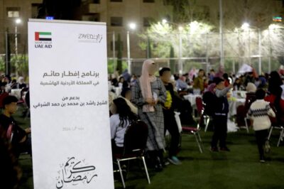 أشرفت سفارة الإمارات العربية المتحدة بعمّان على تنفيذ مشروع إفطار صائم للاسر العفيفة والايتام واللاجئين في العاصمة عمّان والعديد من المحافظات. والمقدم من مؤسسة زايد للأعمال الخيرية والإنسانية وبدعم من الشيخ راشد بن محمد بن حمد الشرقي.