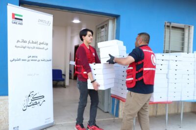 كما تنفذ مؤسسة زايد للاعمال الخيرية والانسانية خلال شهر رمضان الفضيل مشروع توزيع آلاف الطرود الغذائية على الأسر العفيفة واللاجئين في العديد من المناطق والمحافظات في المملكة الأردنية الهاشمية.