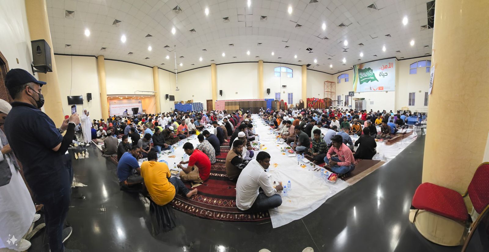 وأضاف الشيخ الرشيد أن الجمعية تقوم خلال شهر رمضان المبارك من كل عام على مشروع تفطير الصائمين حيث يتحلق 1500 صائم يوميا وبمعدل 45 ألف شخص شهريا على موائد الرحمان التي تقيمها الجمعية في عدد من القاعات المعدة والمجهزة لهذا الغرض بكافة الأنظمة الفنية والضوئية والصوتية، وبمساحة تقدر بحولي بأكثر من 2500 متر، مع توفر وسائل السلامة، مشيرا إلى أن هذه المواقع تشهد إقبالا من الصائمين من مختلف الجنسيات العربية، والأفريقية، والآسيوية المقيمة في نطاق عمل الجمعية، ومؤكدا في الوقت ذاته أن عدد من غير المسلمين أشهروا إسلامهم من خلال هذا المشروع بعد أن شاهدوا هذا التكافل في إطعام الطعام، والتعاطف والتكاتف والتعاون في الدعوة بين المسلمين، ونشر المحبة فيما بينهم.