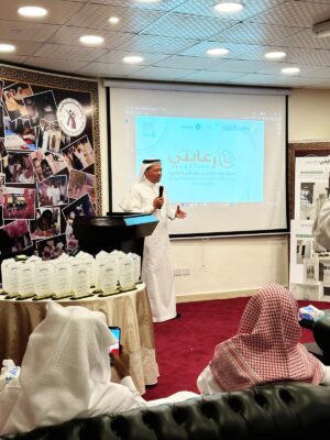 حيث قدم اللقاء أ/هاني الجهني ومن جانب آخر عرف الأستاذ/أشرف مددين( نائب رئيس مجلس الإدارة) الحضور باالبرنامج التعريفي لبرامج وأنشطة الجمعية لخدمة المرضى طريحي الفراش من كبار السن والأشخاص ذوي الإعاقة بمنطقة المدينة المنورة.