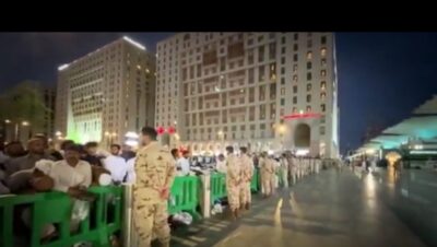 وشاركت أمن الدولة ممثلة في قوة الطوارئ الخاصة بالمدينة المنورة في تسهيل وتنظيم تحركات المصلين في المسجد النبوي الشريف، وذلك حرصًا على سلامة الجميع من التدافع والازدحام، فضلاً عن عمليات الترتيب التي تقوم بها في ساحات المسجد النبوي الشريف.
