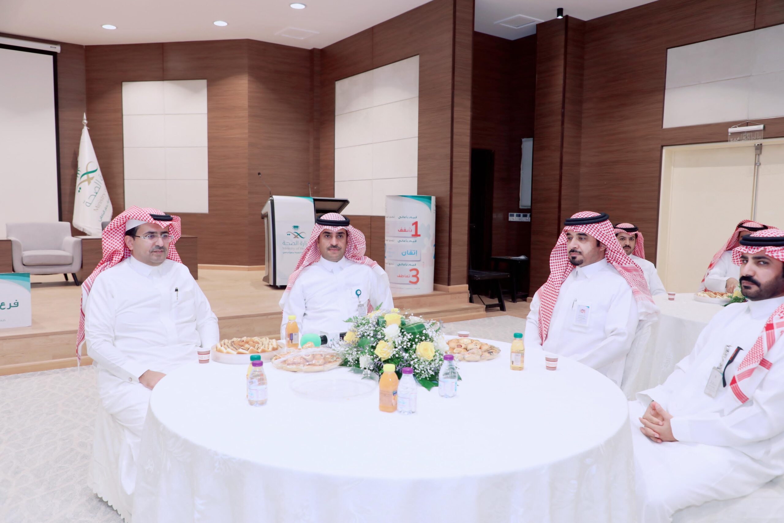 أقامت مديرية الشؤون الصحية بحفر الباطن حفل معايدة لمنسوبيها بمناسبة عيد الفطر المبارك ، وبحضور مدير الشؤون الصحية ناصر بن راشد الصافي ، والرئيس التنفيذي لتجمع حفر الباطن الصحي الدكتور تركي بن عبدالله المقبل, قدم خلال الحفل التهاني والتبريكات بهذه المناسبة المباركة للحضور ، كما تبادل الجميع التهاني، سائلين الله أن يديم على الوطن أمنه واستقراره في ظل حكومة خادم الحرمين الشريفين الملك سلمان بن عبدالعزيز آل سعود، وسمو ولي عهده الأمين – حفظهما الله -.