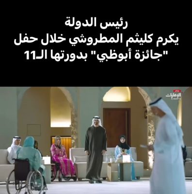 في حدث يُسجل في الذاكرة، في حفل “جائزة أبوظبي” بدورتها الـ11، قام صاحب السمو الشيخ محمد بن زايد آل نهيان، رئيس دولة الإمارات العربية المتحدة، بتكريم السيدة كليثم عبيد المطروشي تقديراً لجهودها المتميزة في مجال حقوق الإنسان وتمكين أصحاب الهمم، وخاصة العنصر النسائي.