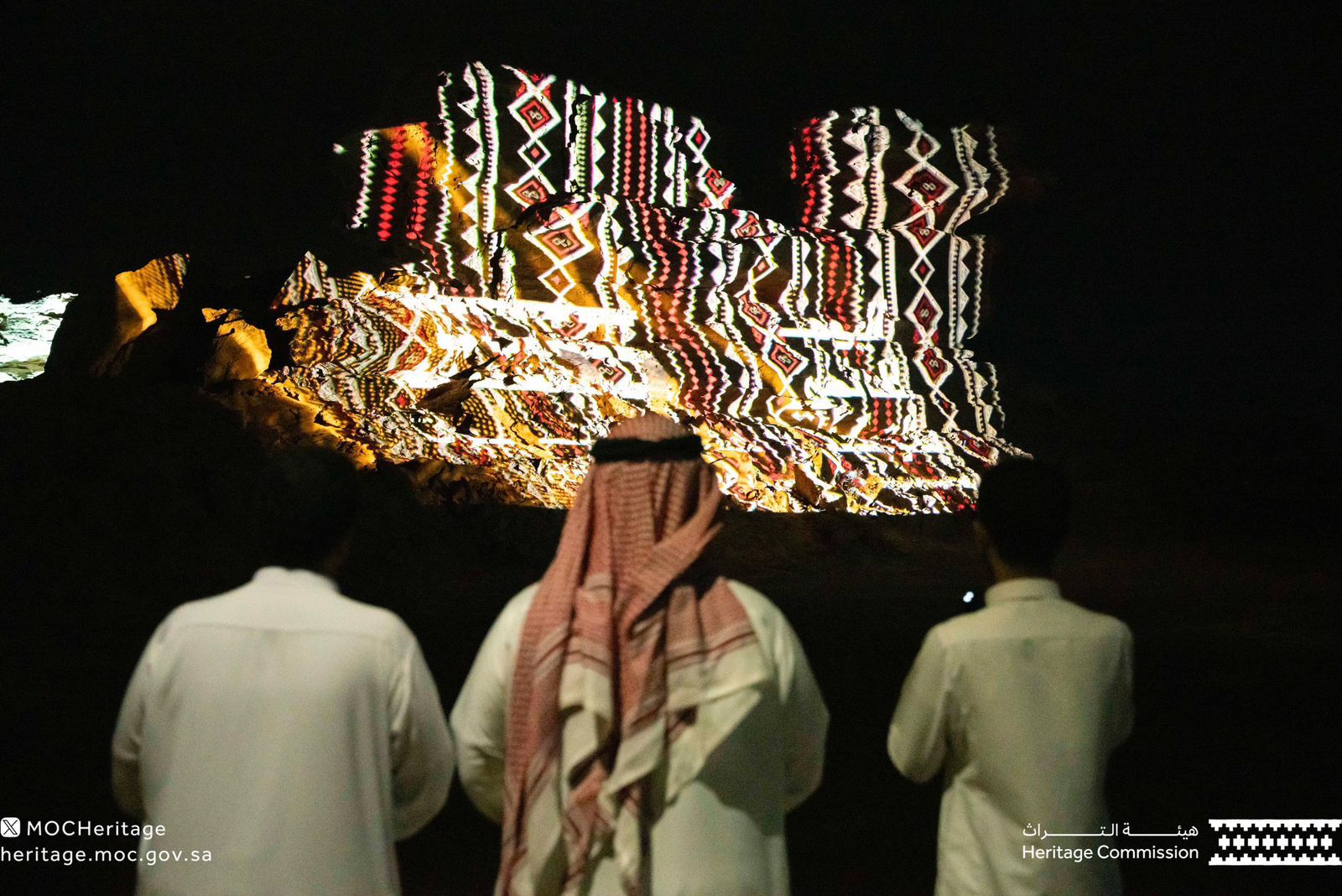 احتفاءً باليوم العالمي للتراث أضاء فرع هيئة التراث بمنطقة الجوف موقع الجمل الأثري بمدينة سكاكا.
