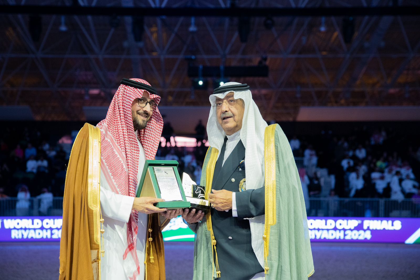 وقدم سمو الأمير عبد الله بن فهد بن عبد الله رئيس مجلس إدارة دروع تذكارية للشخصيات المكرمة تقديراً لجهودهم ولما قدموه لرياضة الفروسية، وذلك في حفل ختام بطولة كأس العالم لقفز الحواجز والترويض 2024 والذي أقيم اليوم السبت على أرض مركز معرض الرياض للمؤتمرات والمعارض.