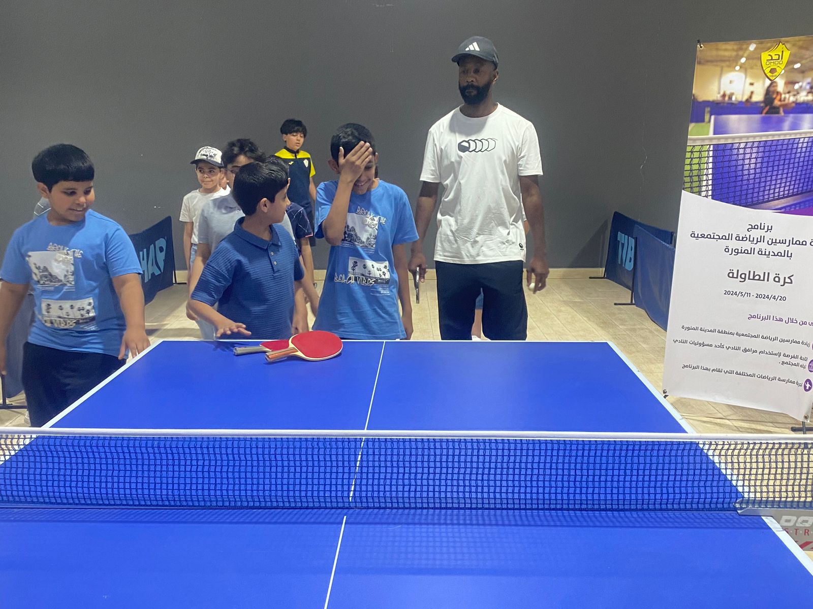 بهدف زيادة ممارسين الرياضة المجتمعية بمنطقة المدينة المنورة لرياضة كرة الطاولة، قدمت المسؤولية المجتمعية بنادي أحد الرياضي بالمدينة برنامجاً اجتماعياً لنشر ثقافة لعبة كرة التنس الطاولة للمجتمع ولجميع الفئات، والتي كان من أبرز أهدافها زيادة ممارسي الرياضة بالمنطقة، وإتاحة الفرصة لإستخدام مرافق النادي كأحد مسؤوليات النادي تجاه المجتمع .