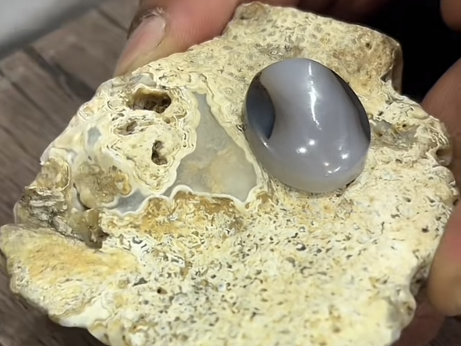 كما يميز حجر العقيق والمرجان أنه يحتضن جيود وكوارتز .