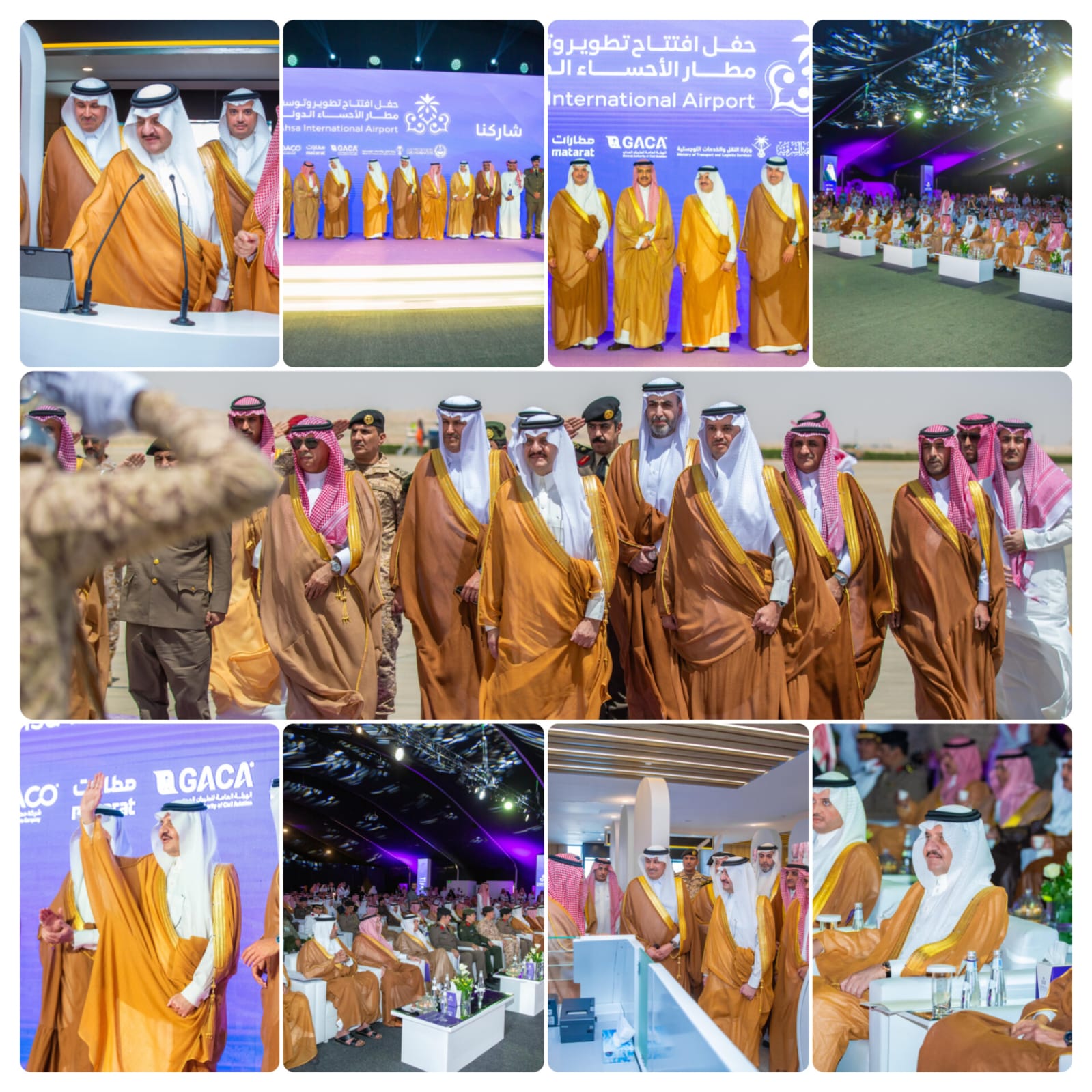 من جانبه أكد سمو محافظ الأحساء، أن دعم ومتابعة سمو أمير المنطقة الشرقية الدائمة للمشروع ومراحل تنفيذه كان لها بالغ الأثر في إنجازه في الوقت المحدد ، موضحاً أن المطار يخدم أكثر من مليون مسافر سنويا إلى وجهات محلية ودولية، وتعتير هذه التوسعة الأكبر في تاريخ مطار الأحساء الدولي . بدوره، قال معالي وزير النقل والخدمات اللوجستية ” أن رعاية سمو أمير المنطقة الشرقية لهذا المحفل الهام، تعكس اهتمام القيادة الرشيدة وحرصها المشهود على دعم المطارات في المملكة بشكل عام والمنطقة الشرقية من بينها، ويؤكد دور منظومة المطارات الحيوي في تحقيق رؤية السعودية 2030، والاستراتيجية الوطنية للنقل والخدمات اللوجستية عبر تحويل المملكة إلى مركز لوجستي عالمي يربط القارات الثلاث، وانعكاس هذا على تحقيق أهم مستهدفات الإستراتيجية الوطنية لقطاع الطيران ومن بينها مضاعفة الطاقة الاستيعابية والوصول إلى أكثر من 330 مليون مسافر سنوياً، من أكثر من 250 وجهة في العالم، علاوة على رفع الطاقة الاستيعابية للشحن إلى 4.5 ملايين طن من البضائع بحلول العام 2030″ . وقال معالي رئيس الهيئة العامة للطيران المدني، ” أن تشريف المنتسبين لصناعة الطيران المدني بهذه الرعاية من قبل سمو أمير المنطقة الشرقية، يعكس اهتمام القيادة الرشيدة بمنظومة المطارات في وطننا الغالي، مبينا أن مطار الأحساء الدولي يحظى اليوم بإمكانات هائلة حيث تم تجهيز المطار بصالتين دوليتين بمساحة إجمالية 2,660م2 مشمولة بميزانين، بالإضافة إلى 10 بوابات للمغادرة والقدوم الداخلي والدولي، وتجاوزت المساحات الإجمالة للمشروع 58 ألف م2 من تطوير وتوسعة، كما اشتملت أعمال التطوير على توسعة صالات المسافرين، ورفع الطاقة التشغيلية لمنصات إنهاء إجراءات السفر إلى 12 منصة للرحلات الدولية والداخلية بنسبة تزيد عن 40% بالإضافة إلى زيادة عدد منصات الجوازات بنسبة 100% لكي تصل إلى 16 منصة للقدوم والمغادرة، وشملت مواقف السيارات طويلة الأمد والتي تتسع اليوم لأكثر من 400 سيارة وبمساحة تزيد عن 18 ألف م2، كما يعيش المطار اليوم قفزة كبيرة في الطاقة الاستيعابية بعد أعمال التوسعة من 400 ألف مسافر إلى مليون مسافر – بفضل الله، كما جاء كل هذا العمل والإنجاز المشهود اليوم في مطار الأحساء الدولي عبر أكثر من مليون ساعة عمل آمنة (دون حوادث) أثناء عمليات الإنشاء والتشييد، ولله الحمد”