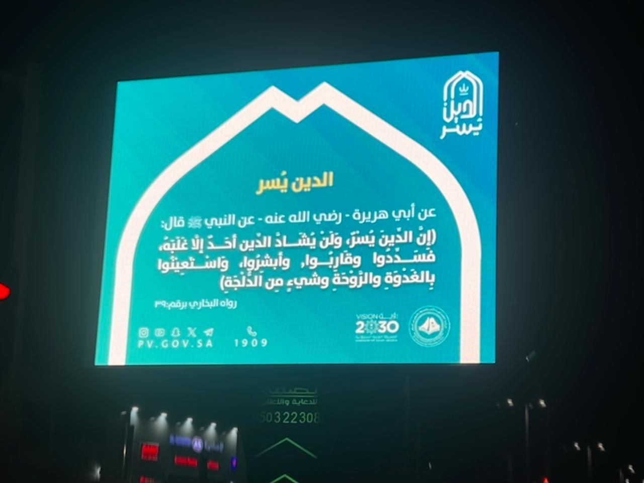 نشرت هيئة الأمر بالمعروف والنهي عن المنكر في محافظة حفر الباطن بالمنطقة الشرقية محتوى حملة “الدين يسر”، من خلال الشاشة الرقمية داخل المجمعات التجارية والميادين العامة.