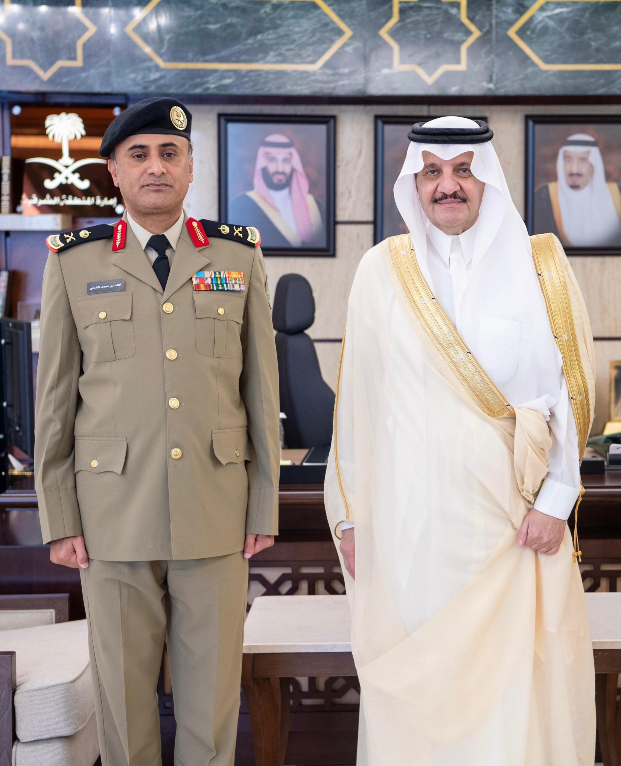 قلد صاحب السمو الملكي الأمير سعود بن نايف بن عبدالعزيز أمير المنطقة الشرقية في مكتب سموه بديوان الإمارة اليوم الأحد قائد قوة أمن المنشآت بمحافظة رأس تنورة اللواء خالد بن محمد القرني رتبته الجديدة (لواء) ،بحضور قائد قوة أمن المنشآت بالمنطقة الشرقية اللواء فهد بن ناشي الكرناف .