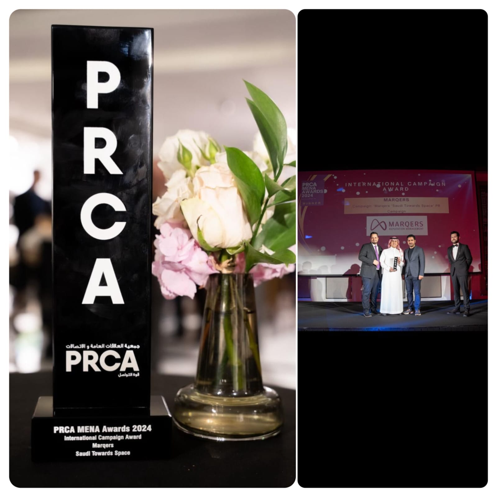 حصدت شركة ماركرز السعودية المتخصصة في العلاقات العامة والاتصال، جائزة جمعية العلاقات العامة والاتصالات في الشرق الأوسط وشمال أفريقيا PRCA، لمشاركتها بمشروع “السعودية نحو الفضاء”، عن فئة أفضل حملة علاقات عامة دولية، وسط منافسة قوية بين 300 من شركات ووكالات العلاقات العامة الإقليمية والدولية في المنطقة، والذي جاء خلال الحفل السنوي لتوزيع جوائز الجمعية، الذي عقد في دبي يوم الخميس الماضي.