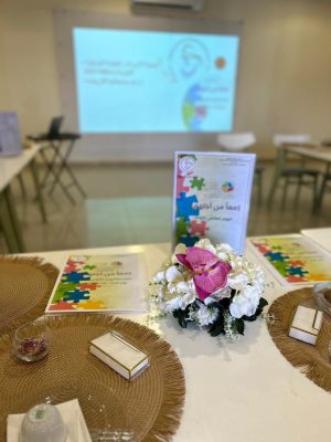 أقامت الجمعية ورشة عمل بعنوان ( معاً من أجلهم ) ،بمناسبة اليوم العالمي للتوحد والذي يصادف 2 أبريل من كل عام ،وذلك بمشاركة عدد من الأخصائيات و عدد من أمهات أطفال التوحد ،حيث تضمنت الورشة استعراض لتجارب أمهات التوحد والتحديات التي واجهتهم وكيفية التغلب عليها ،تلا ذلك مناقشات و مداخلات و طرح توصيات لدعم أسر ذوي التوحد في المحافظة.