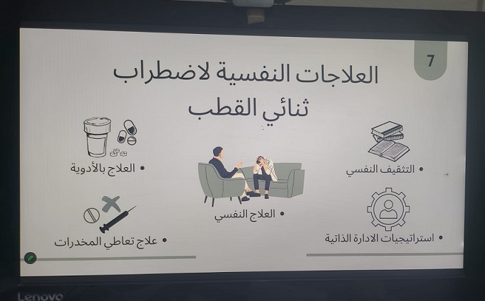 هذا وأوضحت الأخصائيات النفسيات أن “الهوس عكس الاكتئاب” وأشارت إلى العلاجات النفسية لاضطراب ثنائي القطب منها: “العلاج النفسي بالأدوية والتثقيف النفسي، واستراتيجيات الإرادة الداخلية، وعلاج تعاطي المخدرات،” والعلاج الاجتماعي ومن أهمه الأنشطة والرياضة ومراقبة الذات “.