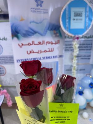 وفي الختام تم توزيع 150 ورده على 150 ممرض وممرضه في مستشفى الافلاج العام بحضور مدير مستشفى الافلاج العام أ. سلطان الدوسري.