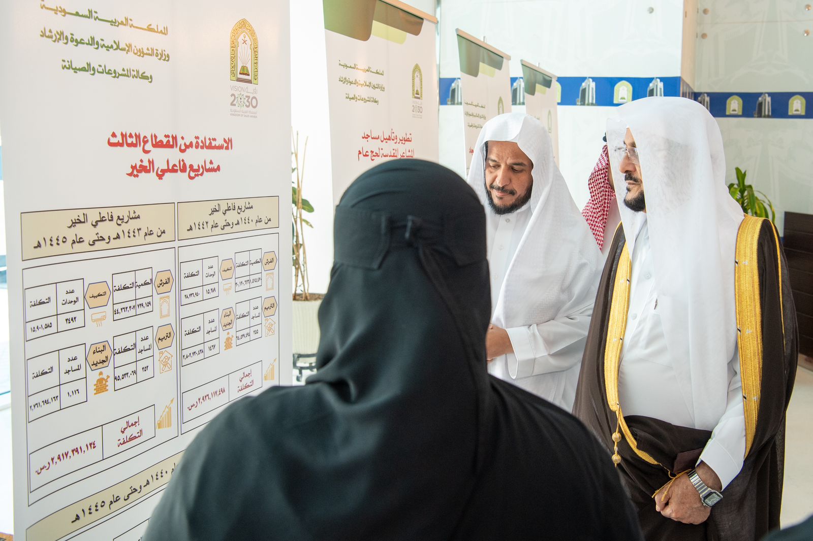 استعرض معالي وزير الشؤون الإسلامية والدعوة والإرشاد الشيخ الدكتور عبداللطيف بن عبدالعزيز آل الشيخ، تقريراً أعدته وكالة الوزارة للمشروعات والصيانة، عن المشروعات التي نُفذت لخدمة بيوت الله عن طريق فاعلي الخير خلال الخمس سنوات الماضية، وذلك خلال تدشين معاليه يوم أمس الاثنين الخامس من ذي القعدة لعام ١٤٤٥هـ للنماذج التصميمية لبيوت الله والتي تحاكي هويّة مناطق المملكة.