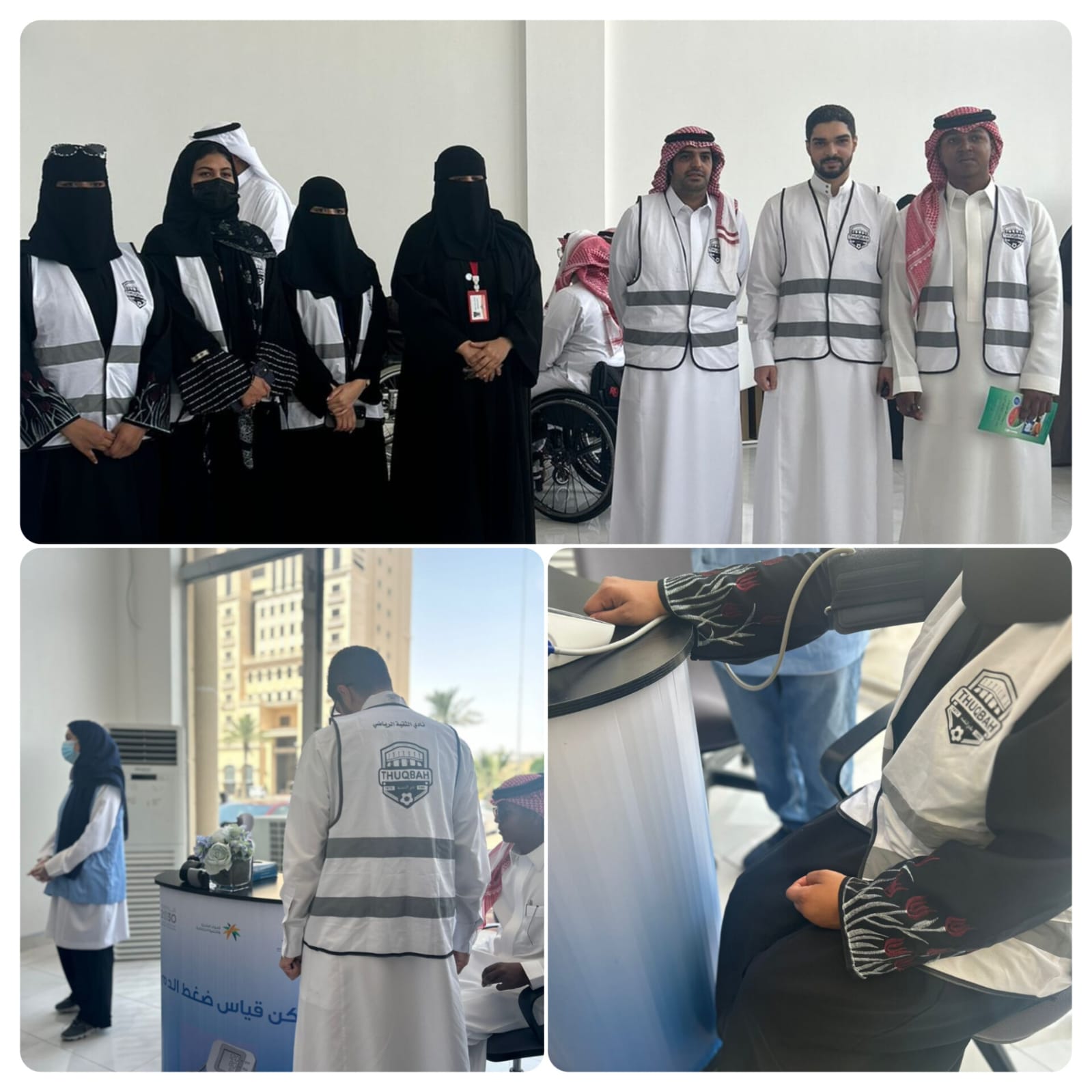 من منطلق المسؤولية المجتمعية في نادي الثقبة الرياضي مع جمعية سواعد لذوي الاعاقة الحركية و الجمعية السعودية للسكر والغدد الصماء تمت مشاركة منسوبي النادي في مبادرة معًا نحو حياة صحية في مقر جمعية سواعد بهدف التوعية بمرض السكري والتعريف بأفضل ممارسات الوقاية والعلاج منه