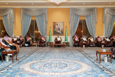 وفي بداية الاستقبال رحب سموه بالجميع ، متناولاً في حديثه للمواطنين العديد من الموضوعات التي تهم المنطقة في مختلف المجالات ، سائلاً الله سبحانه وتعالى أن يديم على البلاد أمنها وعزها واستقرارها في ظل قيادة خادم الحرمين الشريفين الملك سلمان بن عبدالعزيز آل سعود، وسمو ولي عهده الأمين -حفظهما الله- بعد ذلك تناول الجميع طعام العشاء على مائدة سموه .