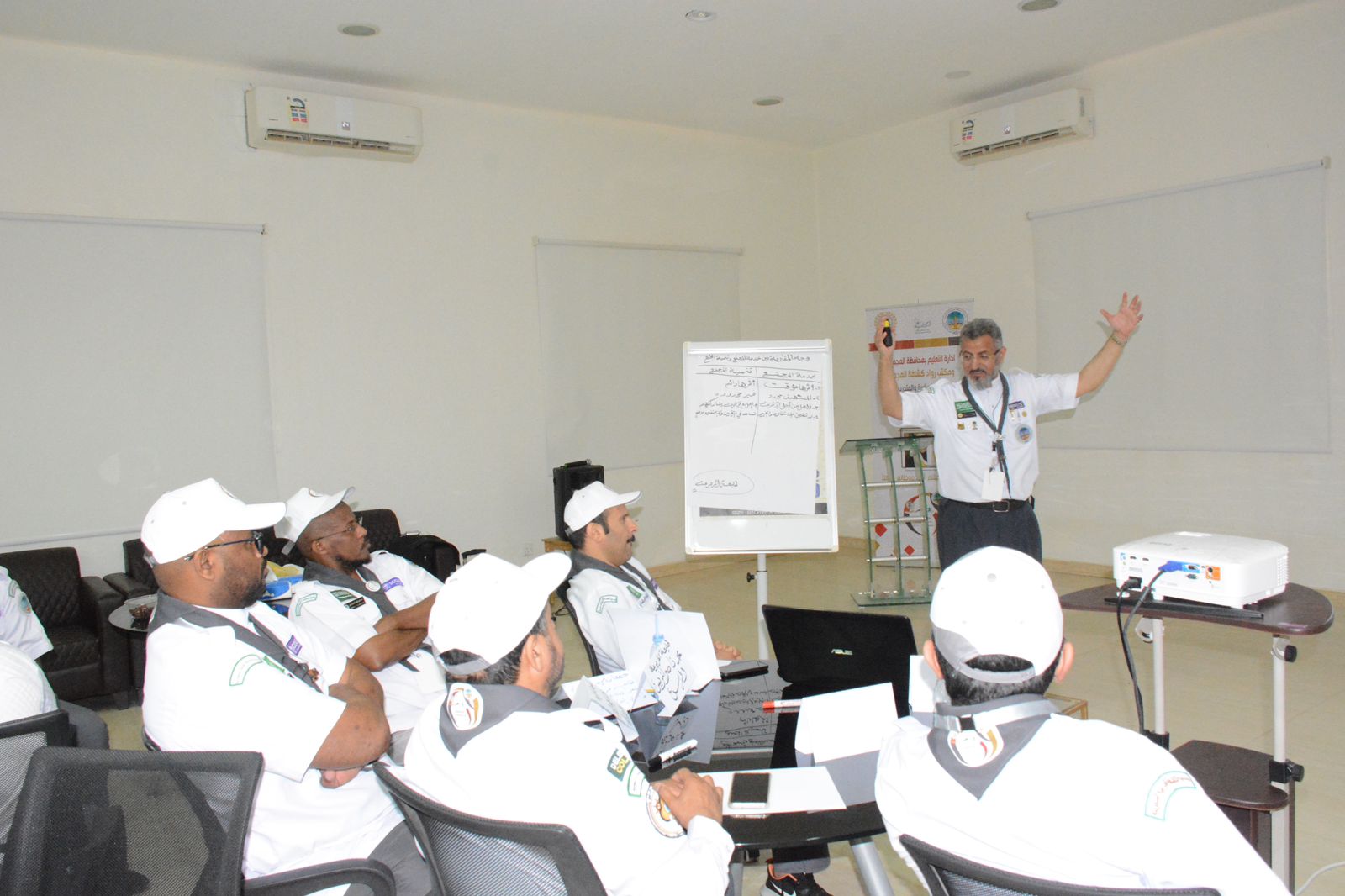 ثم أوضح مدير رابطة المجمعة الأستاذ علي العلي أن عدد المتدربين ٢٨ متدربا يمثلون عدد من مناطق المملكة ويتضمن محتوى الدراسة التي يقدمها سبعة من القادة المختصين في دور المفوض واحتياجاته، وسياسة تنمية القيادات وطرق وأساليب التدريب والظواهر والمشكلات وتصميم مشاريع وأنشطة خدمة تنمية المجتمع وتنميته وتقييم مشاريع وأنشطة خدمة المجتمع وتنميته وطرق إدارة مشاريع التجمعات وبرامج ونظم المنظمات الدولية ذات العلاقة وتحليل البيانات وإعداد التقارير