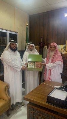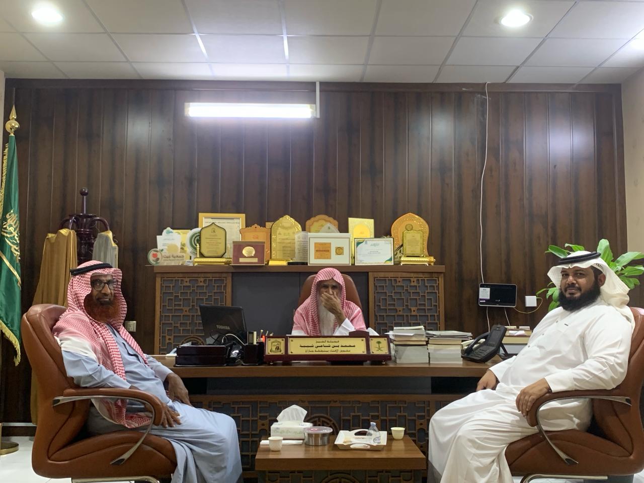 استقبل فضيلة مفوض الإفتاء بمنطقة جازان الشيخ محمد شامي شيبه وسعادة مدير عام فرع الرئاسة العامة للبحوث العلمية والإفتاء بمنطقة جازان الأستاذ عبدالله بن علي حمدي بمكتبه بالفرع اليوم الاثنين الموافق26ذو القعدة 1445هـ فضيلة المدير التنفيذي لجمعية تحفيظ القرآن الكريم في محافظة أحد المسارحة الشيخ عبدالعزيز بن احمد مجرشي والشيخ احمد حمود خبراني عضو مجلس الادارة للجمعية وقدم المدير التنفيذي شرحا بإيجاز عن الأعمال والأنشطة التي تقوم بها الجمعية في شتى المجالات، وأشاد فضيلة مفوض الإفتاء بالعمل الذي تقدمه الجمعية.