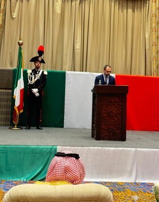 بحضور صاحب السمو الأمير سعود بن عبدالله بن جلوي محافظ جدة ،احتفلت القنصلية العامة لجمهورية إيطاليا بجدة مساء اليوم الاربعاء الموافق 5 يونيو2024 ، باليوم الوطني لبلادها، وكان في استقبال سموه لدى وصوله مقر الحفل القنصل العام لجمهورية إيطاليا بجدة الدكتور ليوناردو كوستا وعدد من منسوبي القنصلية.