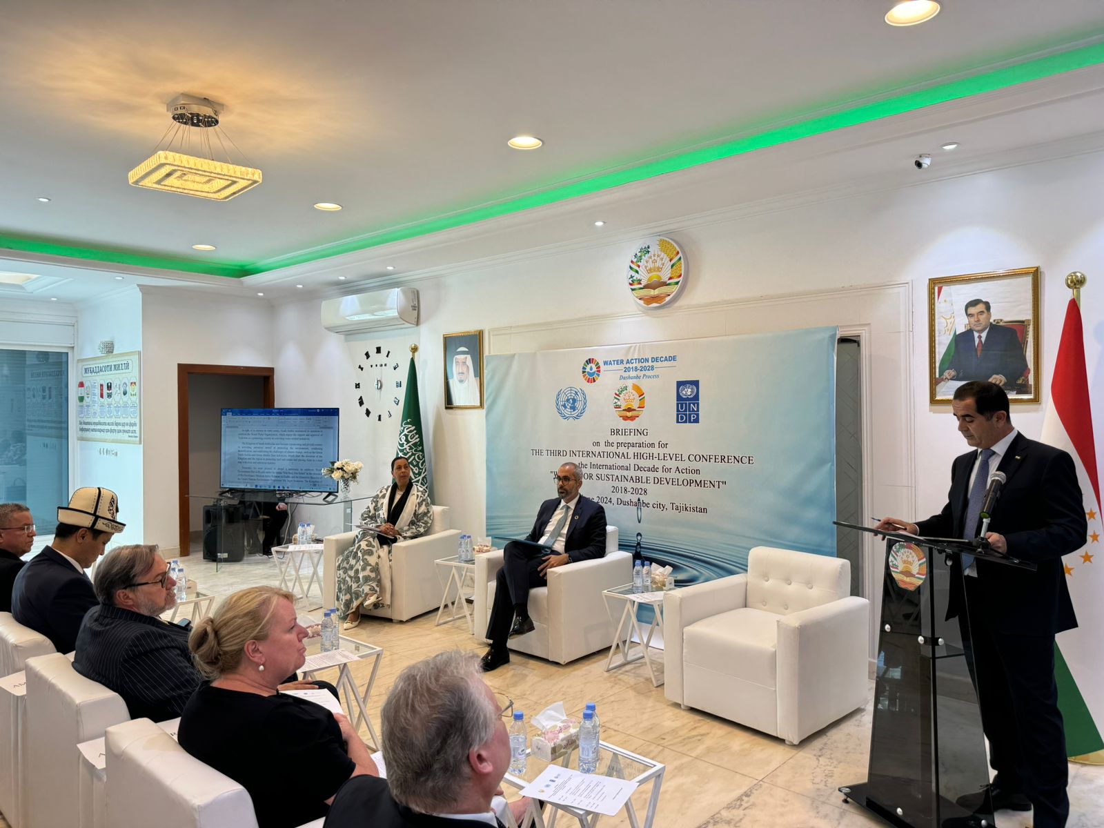 مؤتمراً صحفياً لحضور الإحاطة الاعلامية حول مسار التحضير لمؤتمر دوشنبة الدولي الثالث بشأن العقد الدولي الماء من اجل التنمية المستدامة