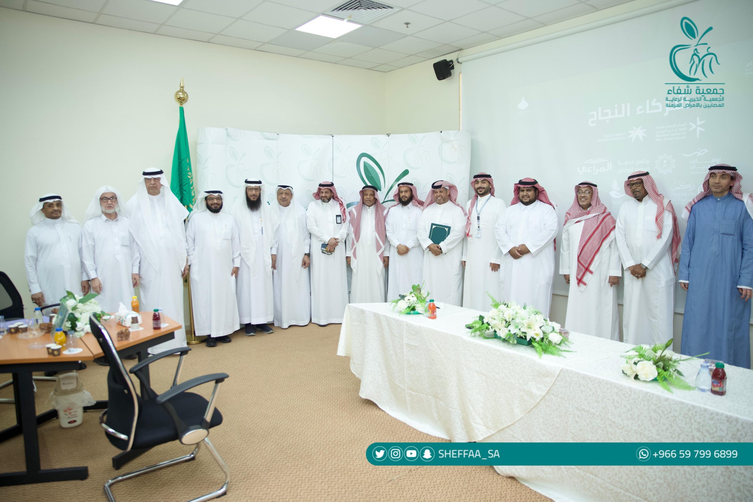 وتم توقيع الإتفاقية الرابعة لمشروع عمليات الوصلات الشريانية الوريدية بين جمعية شفاء و جمعية البر في مكة المكرمة و جمعية البر في جدة وذلك بإشراف اوقاف الضحيان لإجراء ٤٠ عملية لمستفيدي الجمعية