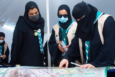 دفعت جمعية الكشافة العربية السعودية؛ بأكثر من 220 عضوة من فتيات الكشافة السعودية للمشاركة في خدمة الحجاج بالتعاون مع الأمن العام بالحرم المكي؛ ضمن اعمال معسكرات الخدمة العامة التي تقيمها الجمعية في مكة المكرمة والمدينة المنورة والمشاعر المقدسة.
