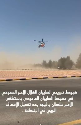 في إطار الجاهزية للفرق والكوادر الطبية والتمريضية والفنية جرى صباح اليوم هبوط تجريبي لطيران الهلال الاحمر السعودي في مهبط الطيران العامودي بمستشفى الامير سلطان بمليجه “احد مكونات تجمع الشرقية الصحي” وذلك بعد تفعيل الإسعاف الجوي في المنطقة الشرقية .