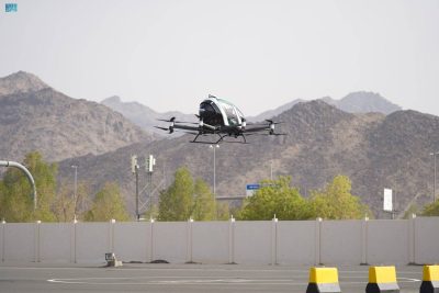 وتضمنت التجربة، التي تم تطبيقها لأول مرة، بحضور رئيس الهيئة العامة للطيران المدني عبد العزيز الدعيلج، ونائب وزير النقل والخدمات اللوجستية الدكتور رميح الرميح، ومدير الأمن العام الفريق محمد البسامي، وعدد من ممثلي الجهات ذات العلاقة؛ إقلاع التاكسي الجوي الكهربائي بشكل عمودي. وتعد هذه الطائرة أول تاكسي جوي في العالم، مرخص من سلطة طيران مدني، كما تم استعراض الخدمات التي يمكن أن يوفرها التاكسي الجوي؛ في نقل حجاج بيت الله الحرام بين المشاعر المقدسة، والمساهمة في تيسير التنقل في حالات الطوارئ ونقل المعدات الطبية، وتقديم الخدمات اللوجستية عبر نقل البضائع.