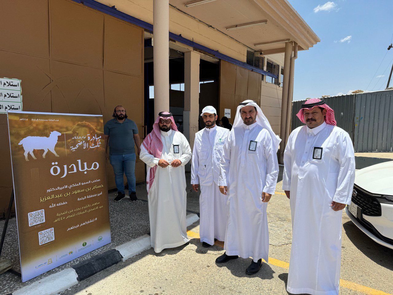 ضمن مبادرة ثلث الأضحية بمنطقة الباحة للعام ١٤٤٥هـ التي أطلقتها إمارة منطقة الباحة ، بالتعاون مع فرع وزارة البيئة والمياه والزراعة بالمنطقة وأمانة منطقة الباحة وفرع وزارة الموارد البشرية والتنمية الاجتماعية وعدد من الجمعيات تحت شعار لنشاركهم فرحتهم ، حيث تستقبل التبرعات في تسع مسالخ متفرقة على المحافظات والمراكز التابعة لمنطقة الباحة.