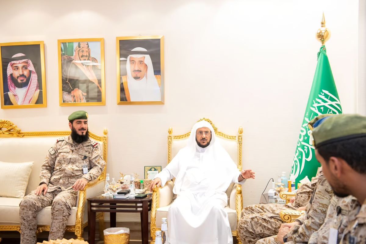 استقبل معالي وزير الشؤون الإسلامية والدعوة والإرشاد رئيس اللجنة العليا لأعمال الوزارة بالحج والعمرة والزيارة الشيخ الدكتور عبداللطيف بن عبدالعزيز آل الشيخ في مكتبه بمقر الوزارة بمشعر منى، اليوم الحادي عشر من شهر ذي الحجة لعام 1445هـ، وفداً من أعضاء الإدارة العامة للشؤون الدينية للقوات المسلحة المدير العام للإدارة سعادة اللواء الدكتور مسفر بن حسن آل عيسى المشرف العام على معسكرات الشؤون الدينية بالمشاعر المقدسة ومساعده العميد الركن عبدالعزيز سعود الدريس، ومدير إدارة مكافحة التطرف وتعزيز الولاء العميد الركن سعد بن عبدالله الشمراني وعدد من منسوبي وزارة الدفاع.