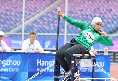كما حجزت الرامية السعودية سارة الجمعة مقعداً لها في دورة الألعاب البارالمبية الباريسية من خلال الأداء العالي الرياضي في مسابقة دفع الجلة بعد ان رمت لمسافة 6,47 متر .
