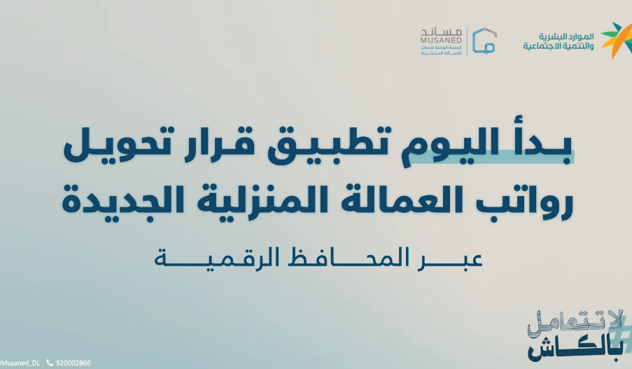 أعلنت وزارة الموارد البشرية، بدء تطبيق قرار الإلزام بتحويل رواتب العمالة المنزلية عبر المحافظ الرقمية ابتداءً من اليوم 1 يوليو.  ويهدف القرار إلى حفظ حقوق الأطراف التعاقدية، وضمان الشفافية في عملية دفع الرواتب وتسهيلها على المستفيدينوأوضحت الوزارة مراحل تطبيق القرار على النحو التالي:- 1 يوليو 2024: تنفيذ القرار على العمالة الجديدة القادمة إلى المملكة لأول مرة. 1 يناير 2025: يطبق على أصحاب العمل الذين لديهم أكثر من 4 عمال منزليين .1 يوليو 2025: يطبق على أصحاب العمل الذين لديهم 3 عمال منزليين فأكثر.1 أكتوبر 2025: يُطبق القرار على أصحاب العمل الذين لديهم اثنان من العمالة المنزلية فأكثر.1 يناير 2026: يطبق القرار على جميع العمالة المنزلية.
