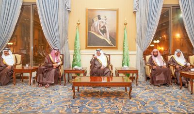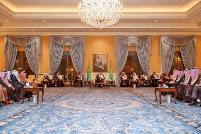 وفي بداية الاستقبال رحب سموه بالجميع ، متناولاً في حديثه للمواطنين العديد من الموضوعات التي تهم المنطقة في مختلف المجالات ،سائلاً الله سبحانه وتعالى أن يديم على البلاد أمنها وعزها واستقرارها في ظل قيادة خادم الحرمين الشريفين الملك سلمان بن عبدالعزيز آل سعود، وسمو ولي عهده الأمين -حفظهما الله- بعد ذلك تناول الجميع طعام العشاء على مائدة سموه .