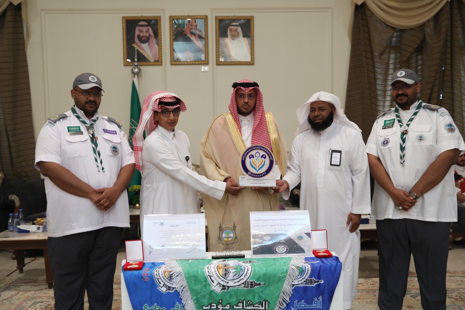 كرّم وكيل مُحافظة وادي الدواسر الأستاذ صالح بن سيف الرافع؛ في ديوان المحافظة أمس أعضاء عشائر الجوالة في جمعية التنمية الأهلية بالشرافاء؛ المشاركين في خدمة ضيوف الرحمن خلال موسم الحج 1445هـ، بحضور نائب مركز التنمية الاجتماعية بوادي الدواسر الأستاذ حسن بن عبيد الشريف؛ ورئيس اللجنة الدكتور جمعان بن عبدالله آل حسين.