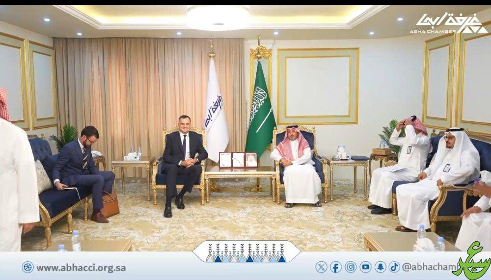 وتم خلال اللقاء مناقشة حجم التبادل التجاري بين المملكة والاتحاد الأوربي وطرق تعزيز العلاقات الثنائية من خلال اللقاءات والفعاليات والزيارات التجارية، كما تم استعراض أهم مقومات منطقة عسير الاقتصادية.