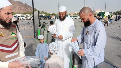 ضمن الدور المجتمعي وتعزيز المسؤلية المجتمعية نفذت جمعية البيئة بالمدينة المنورة حملة توعوية وتخللها توزيع مضلات شمسيه ومياه لضيوف الرحمن الحملة والتي تأتي ضمن (مبادرة تنفس ) بدعم من صندوق البيئة والتي اقيمت يوم أمس السبت في ساحات مسجد قباء .