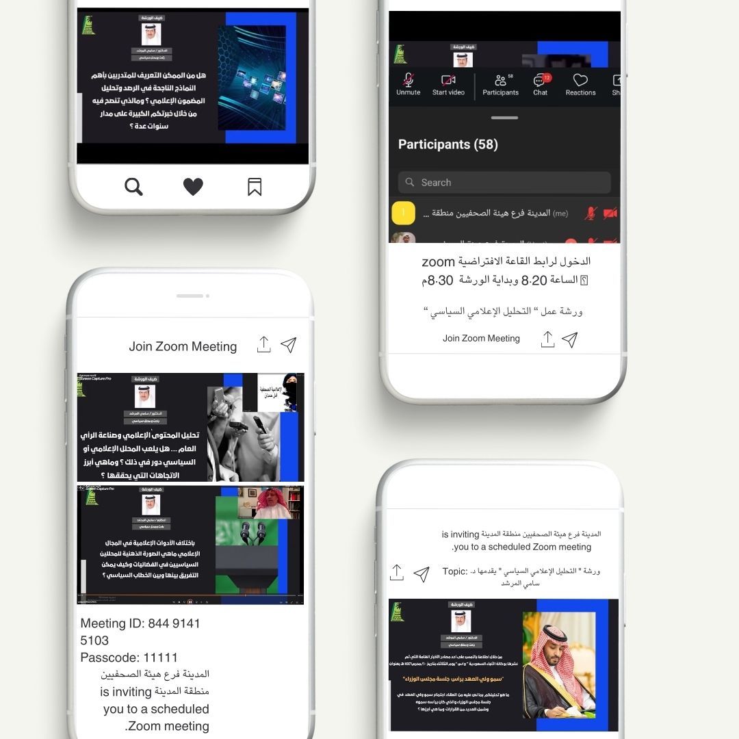 نفذّ فرع هيئة الصحفيين السعوديين بمنطقة المدينة المنورة مساء أمس الأربعاء ورشة عمل بعنوان “التحليل الإعلامي السياسي … مابين السطور” قدمها الباحث والكاتب في العلاقات الدولية والمحلل السياسي سامي المرشد، وشملت الورشة عِدة محاور في مجالات التحليل الإعلامي، منها سمات المحلل السياسي وأبرز المهارات التي لابد أن يتقنها، المصادر الموثوقة للمعلومات، صناعة الرأي العام بين الجمهور، الظواهر الإعلامية التي صاحبت الإعلام المعاصر، الخصائص النفسية والدلالات الفكرية في الرسائل الإعلامية ومدى تأثيرها، النماذج الناجحة في الرصد، الصورة الذهنية للمحللين السياسيين في الفضائيات، دور العلاقات العامة في وضع خطة استراتيجية واحدة.