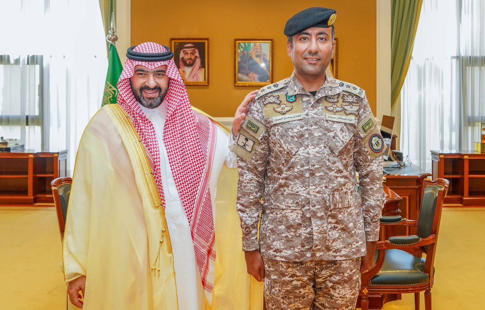 قلد صاحب السمو الملكي الأمير خالد بن سعود بن عبدالله الفيصل بن عبدالعزيز نائب أمير منطقة تبوك بمكتبه بالإمارة اليوم ،قائد الحماية الخاصة لسموه العقيد فهد بن سمحان اللحيان رتبته الجديدة ، بعد صدور الأمر الملكي الكريم بترقيته إلى رتبة عقيد . وهنأ سموه العقيد اللحيان بهذه الثقة الكريمة، متمنيًا له التوفيق والسداد والعون لخدمة الدين ثم المليك والوطن . فيما أعرب العقيد اللحيان عن بالغ شكره وتقديره لسمو نائب أمير المنطقة ، مؤكدًا أن توجيهاته ستكون دافعاً له لبذل المزيد من الجهد والعطاء .