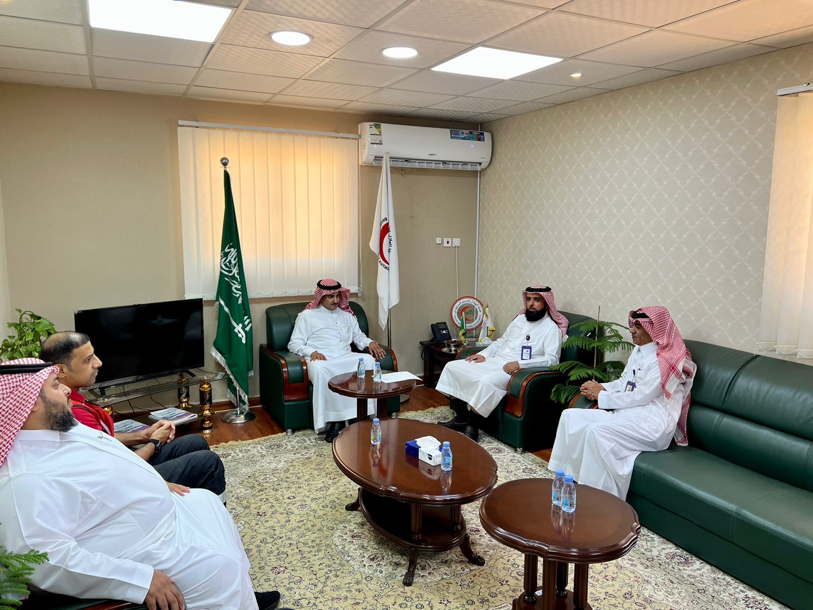 استقبل سعادة مدير عام فرع هيئة الهلال الأحمر بمنطقة الجوف الدكتور ممدوح بن ناحي الرويلي بمكتبه بمقر الفرع بمدينة سكاكا مدير شركة الاتصالات السعودية ( STC ) بالمنطقة الأستاذ سالم بن عياده العنزي ومساعد المدير العام الأستاذ يوسف بن مرزوق الهادي.