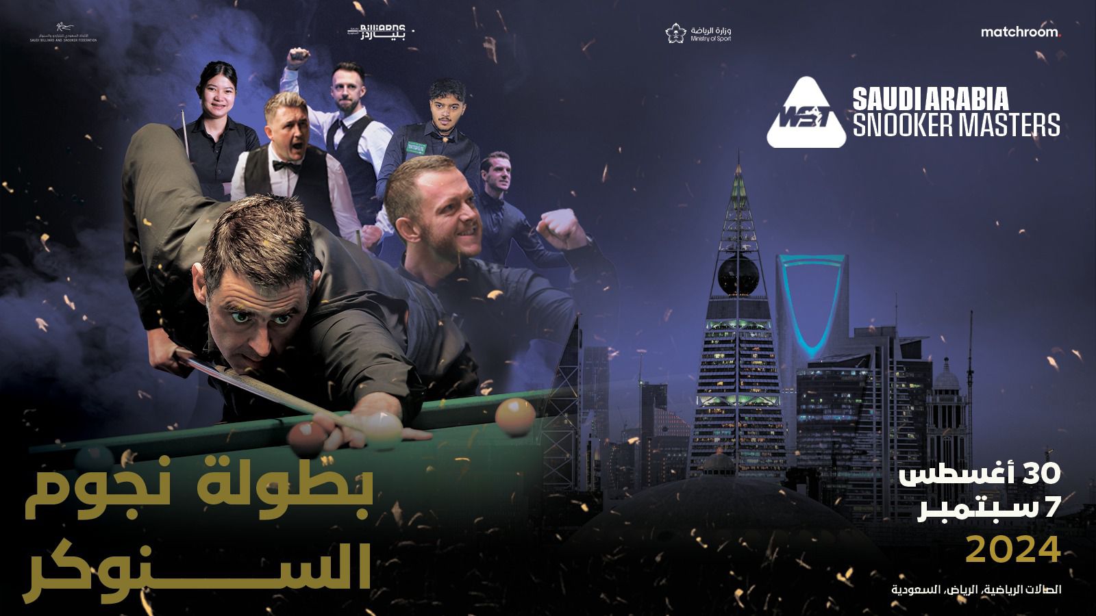 تستعد العاصمة الرياض لاستضافة منافسات بطولة الماسترز السعودية للسنوكر، والتي ينظمها الاتحاد السعودي للبلياردو والسنوكر، بإشراف من وزارة الرياضة، خلال الفترة من 30 أغسطس وحتى 7 سبتمبر 2024م، في الصالات الرياضية بمجمع الأمير فيصل بن فهد الأولمبي بالرياض، حيث تقرر أن تشهد البطولة مشاركة 144 من أفضل لاعبي السنوكر في العالم.