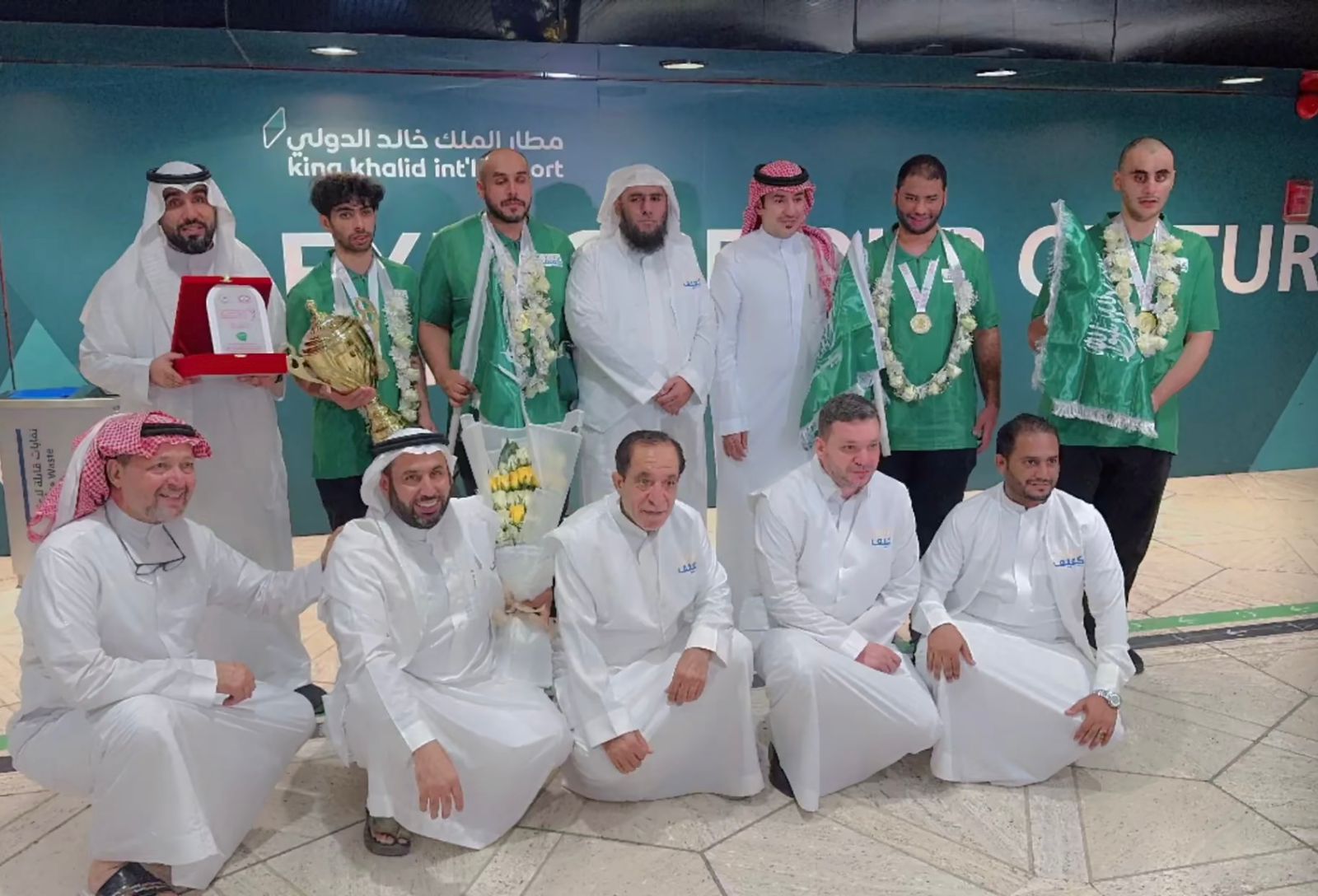 استقبل اعضاء مجلس ادارة ومنسوبي جمعية “كفيف” يتقدمهم المدير التنفيذي بالجمعية بالإنابة الاستاذ على الشهري ومدير العلاقات العامة والاعلام الاستاذ عبدالمحسن القشعمي وعدد من الإعلاميين فريق كرة الهدف بالجمعية “كفيف ” بعد وصولهم لمطار الملك خالد الدولي بالرياض وذلك بعد تحقيقهم المركز الأول وكأس بطولة تحدي الجمعيات والأندية الخليجية والتي أقيمت في مسقط بدولة عمان الشقيقة ، حيث استطاع النجوم تحقيق الفوز فى المباراة النهائية على المنتخب القطري بنتيجة (9- 4 )وبعد نهاية المباراة توج رئيس اللجنة البارالمبية العمانية ورئيس مجلس إدارة جمعية النور بعمان نيابة عن صاحب السمو السيد فهر بن فاتك بن فهر آل سعيد، وبحضور القائم بالأعمال في السفارة السعودية في سلطنة عُمان الاستاذ/ يوسف محمد العودة الفائزين بالمراكز المتقدمة ، وقد حظي الوفد المشارك المكون من أ. إبراهيم الخنيفر رئيساً للوفد، واللاعبون: الوليد كعبي وإبراهيم المحياء ومبارك الشهراني ومحمد الحسياني ويزيد البطي.بحسن الحفاوة والاستقبال من القائمين بمطار الملك خالد الدولي ومن وسائل الإعلام المختلفة خاصة من هيئة الاذاعة والتلفزيون ممثلة بالقنوات السعودية وكذلك مراسلي الصحف المختلفة.