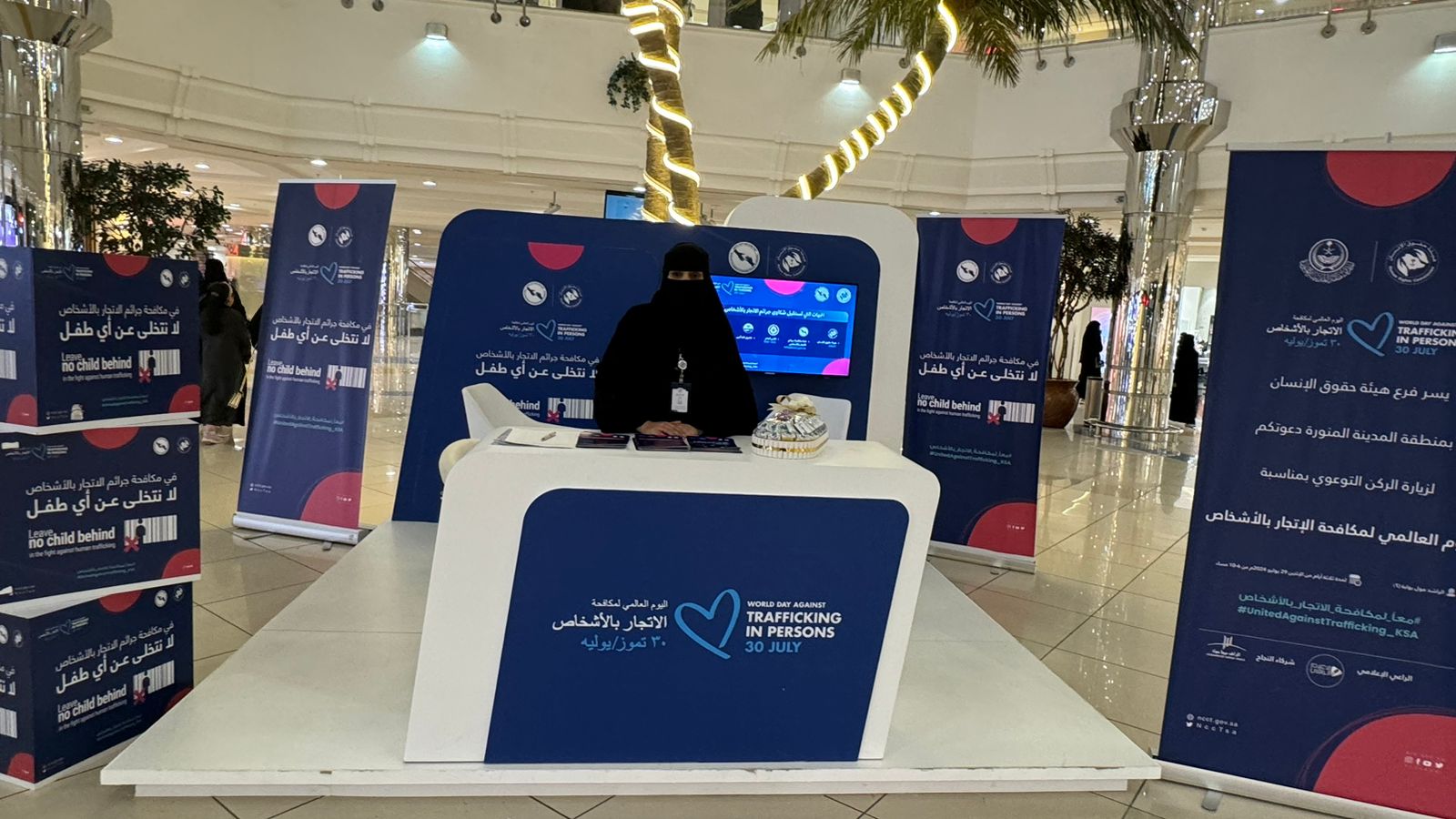نظم فرع هيئة حقوق الإنسان بمنطقة المدينة المنورة معرضاً توعوياً بمناسبة اليوم العالمي لمكافحة الإتجار بالأشخاص لعام 2024، وذلك بمركز الراشد التجاري تحت شعار “لن نتخلى عن أي طفل”. يهدف هذا المعرض إلى زيادة الوعي بخطورة الإتجار بالأشخاص، خصوصاً الأطفال، وتسليط الضوء على الجهود المبذولة في المملكة العربية السعودية لمكافحته.