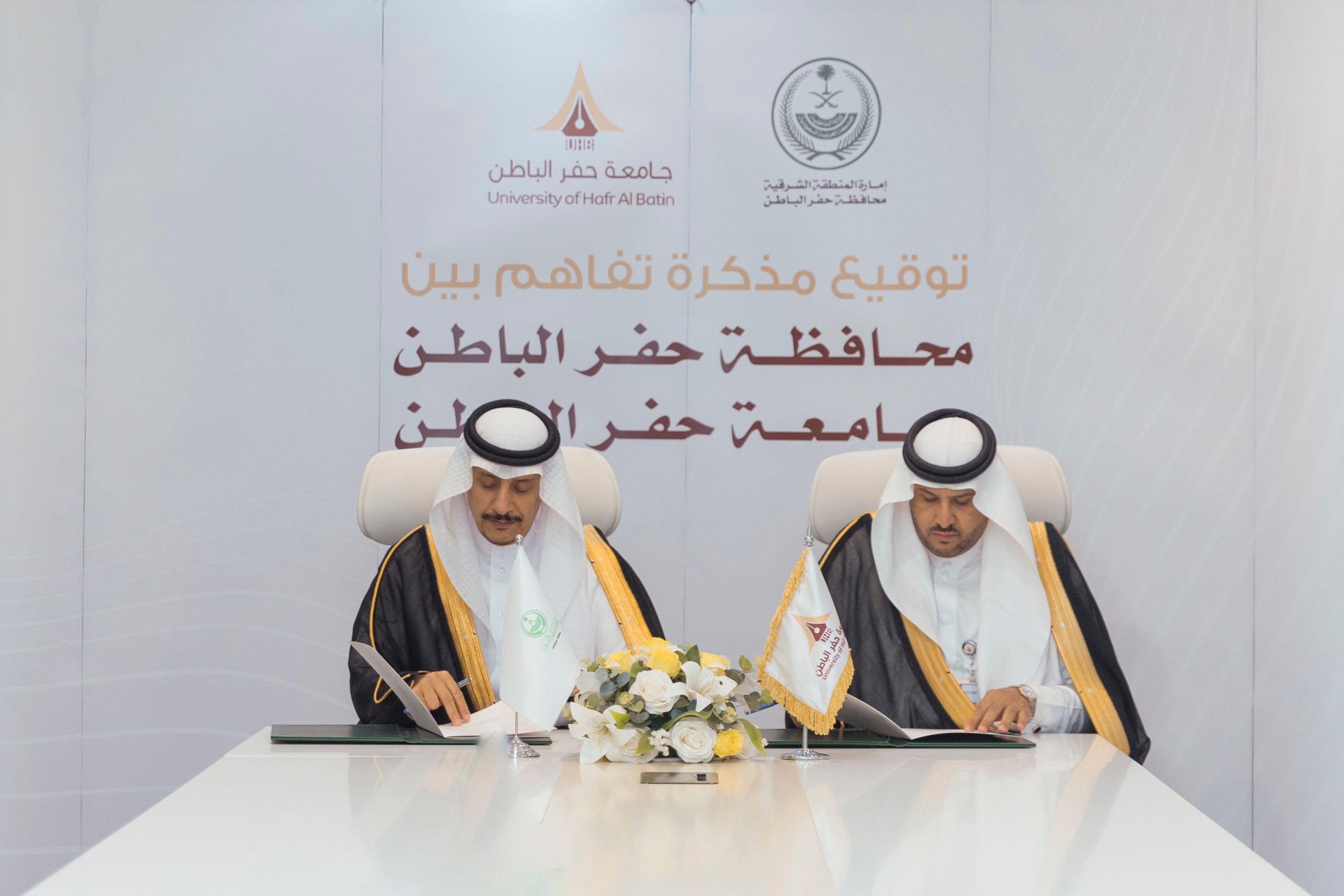وقع صاحب السمو الأمير عبد الرحمن بن عبد الله بن فيصل محافظ حفر الباطن اليوم الثلاثاء، مذكرة تفاهم مع رئيس جامعة حفر الباطن الأستاذ الدكتور خالد بن باني الحربي، وذلك في مقر المحافظة بحفر الباطن، بحضور سعادة وكلاء الجامعة.