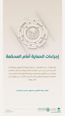 أكدت النيابة العامة على حماية المشمولين ببرنامج الحماية أمام المحكمة ، أوضحت النيابة العامة في حساباتها على وسائل التواصل الاجتماعي أن نظام حماية المبلغين والشهود والخبراء والضحايا أشار إلى أنه للمحكمة – عند الاقتضاء- سماع شهادة الشهود ومناقشة الخبراء في أي من الجرائم المشمولة بأحكام النظام بمعزل عن المتهم ومحاميه، ويبلغ المتهم أو محاميه بما تضمنته الشهادة وتقرير الخبرة دون الكشف عن هوية من أدلى بهما.