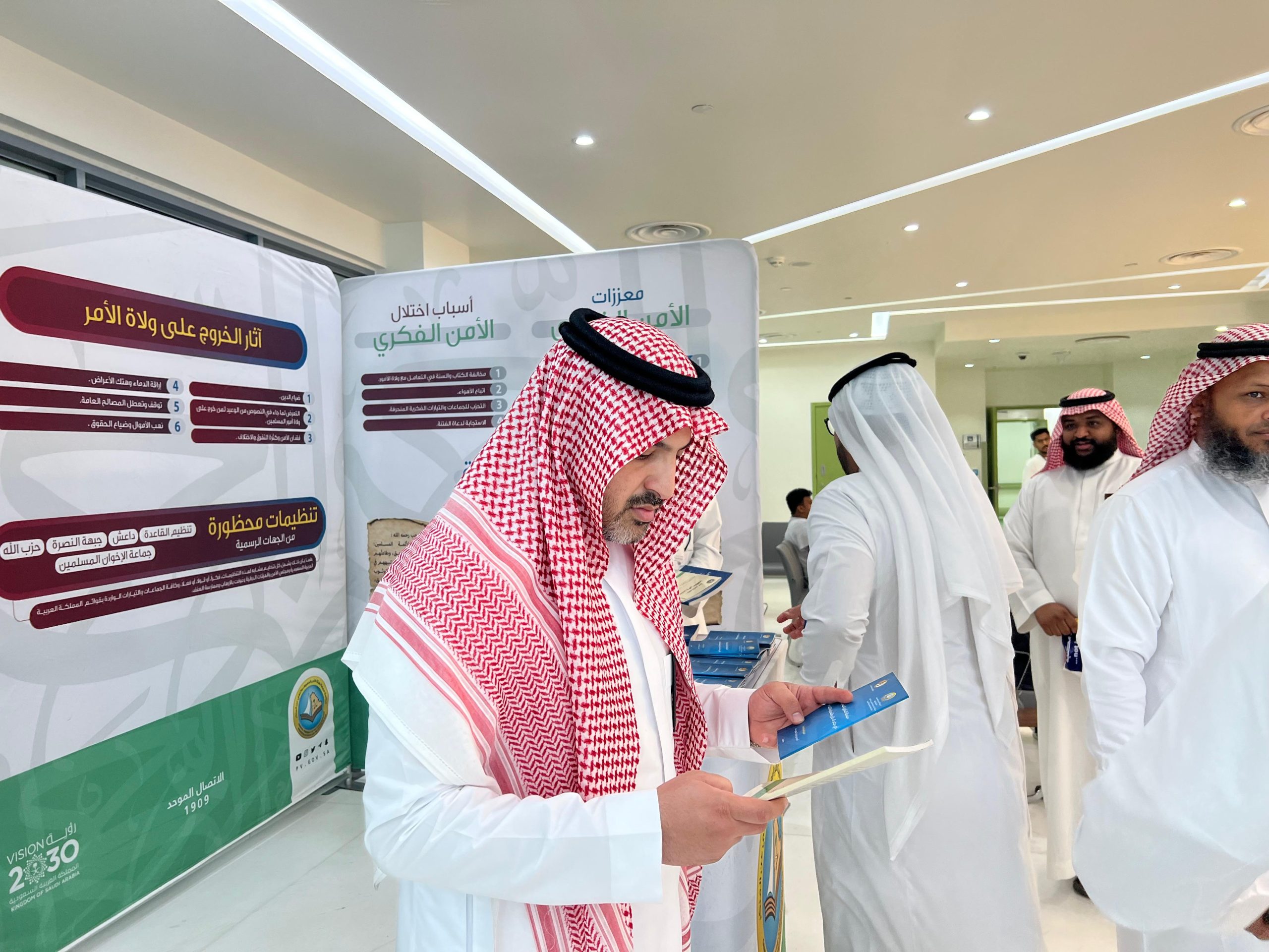 ويهدف المعرض إلى نشر الوعي والتحذير من الغلو ويعزز قيم الوسطية والاعتدال، ويوضح أهمية الأمن الفكري وكيفية تحقيقه بين أفراد المجتمع، ويعزز الانتماء والولاء واللحمة الوطنية، ويرسخ حب الوطن والمحافظة على أمنه والسمع والطاعة لولاة الأمر – حفظهم الله-.