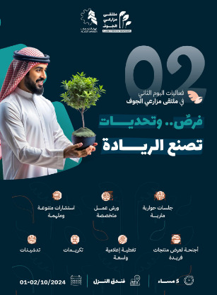 يشهد اليوم الثاني من ملتقي مزارعي الجوف العديد من الفعاليات والأنشطة ، حيث بعد مراسم الافتتاح والترحيب بالحضور