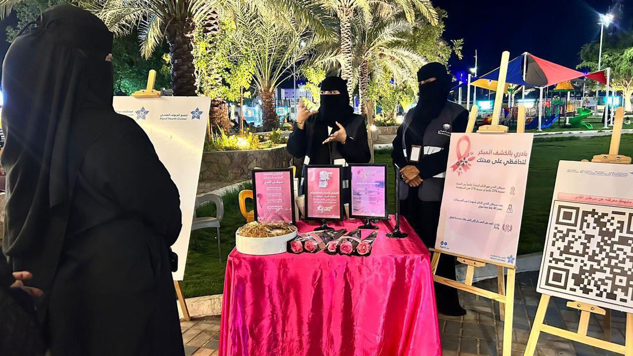 نظم تجمع الجوف الصحي فعالية توعوية بعنوان “رايتك وردية” لرفع الوعي لدى السيدات بسرطان الثدي والكشف المبكر وذلك بالتزامن مع الحملة التي انطلقت في منطقة الجوف وتستهدف مراجعي المستشفيات ورواد المراكز التجارية والمنتزهات.