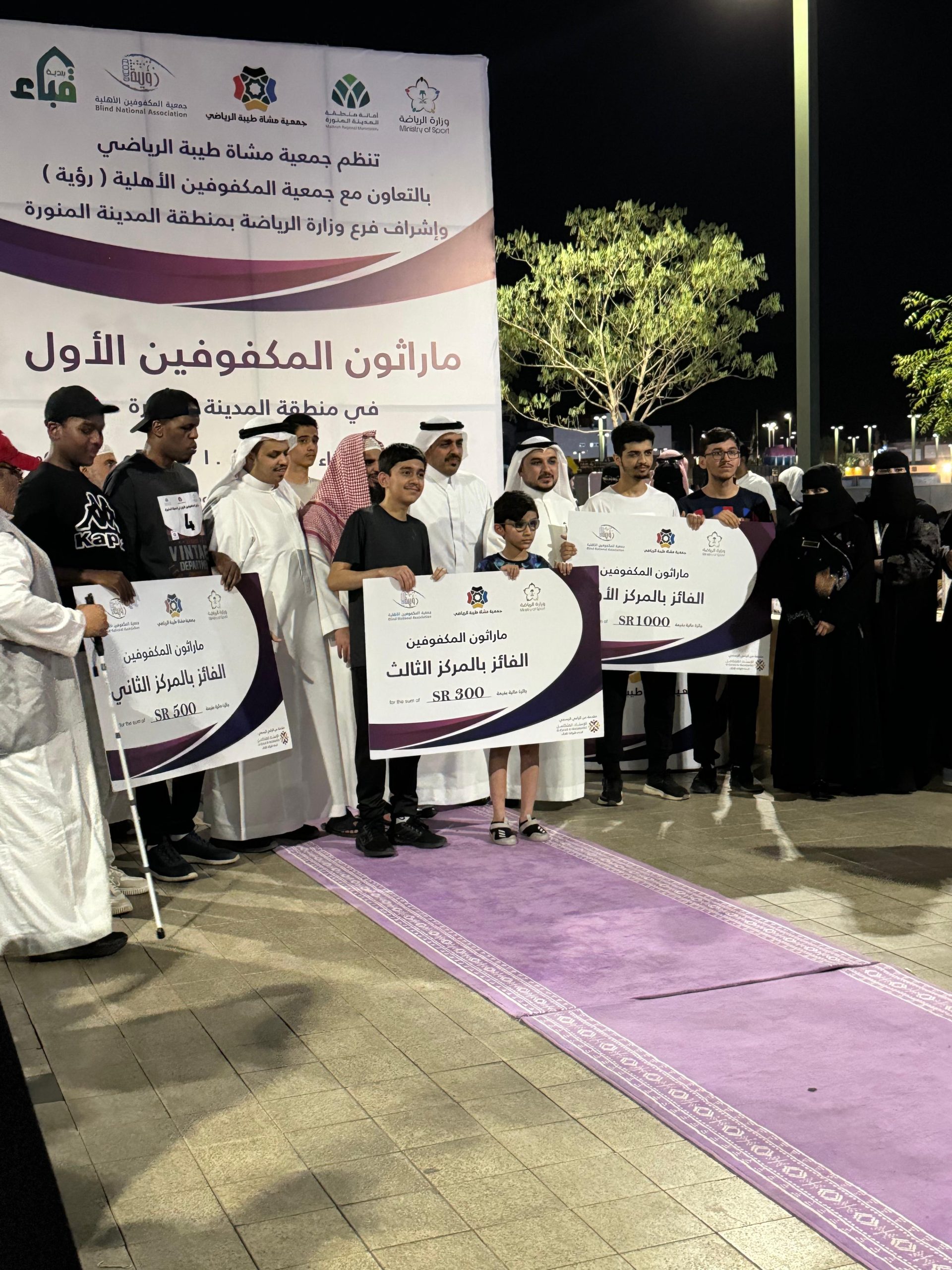 انطلق مساء الثلاثاء 15 أكتوبر في ممشى القصواء بالمدينة المنورة الماراثون الأول للمكفوفين، بتنظيم جمعية مشاة طيبة الرياضي، بالتعاون مع جمعية المكفوفين رؤية، وبرعاية شركة الإسناد المتكاملة، وتحت إشراف وزارة الرياضة.